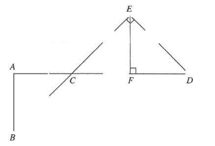 In the figure below, A, C, F, and Dar; collinear; B, C, and E are collinear; and the angles at A, E, and F are right angles, as marked. Which of the following state- ments is NOT justifiable from the given information?