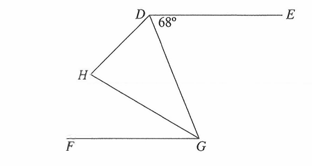 In the figure below, D̅E̅ || F̅G̅, D̅G̅ bisects ∠HDE, and HG bisects ∠FGD. If the measure of LEDG is 68°, what is the measure of ∠DHG ?