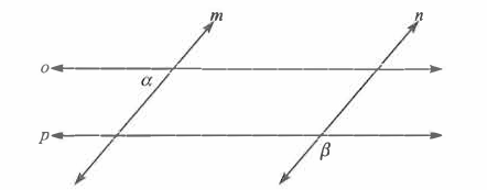 In the figure below, lines m and n are parallel, lines o and p are parallel, and the measure of angle α is 40°. What is the measure of angle β?