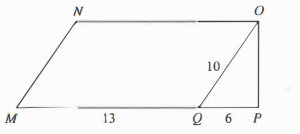 In the figure below, MNOQ is a parallelogram and OPQ is a right triangle. The side lengths shown are in centimeters. What is the area, in square centimeters, of figure MNOP?