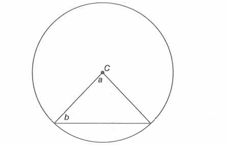 In the figure below, point C is the center of the circle. If a= 80°, what is the value of b?