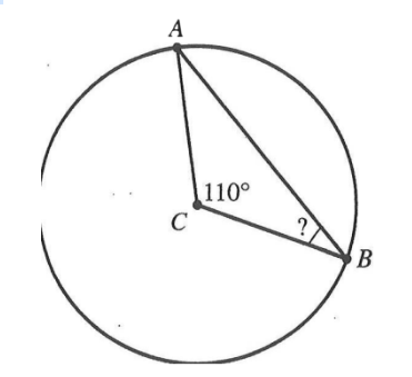 Points A and B lie on the circle below, where central angle ∠ACE measures 110°. What is the measure of ∠ABC?