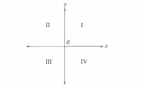 The graph of the equation 6x + 3y = 12 is found in which quadrants of the standard (x,y) coordinate plane below?