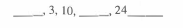 Which 3 numbers should be placed in the blanks below so that the difference between consecutive numbers is the same?